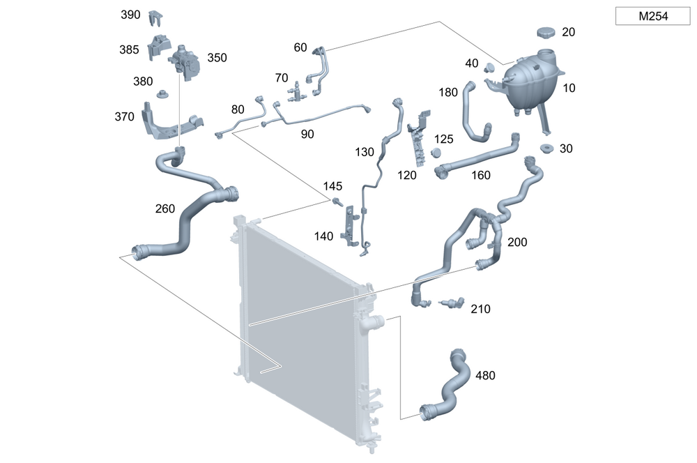 Expansion reservoir to cooler and to engine.