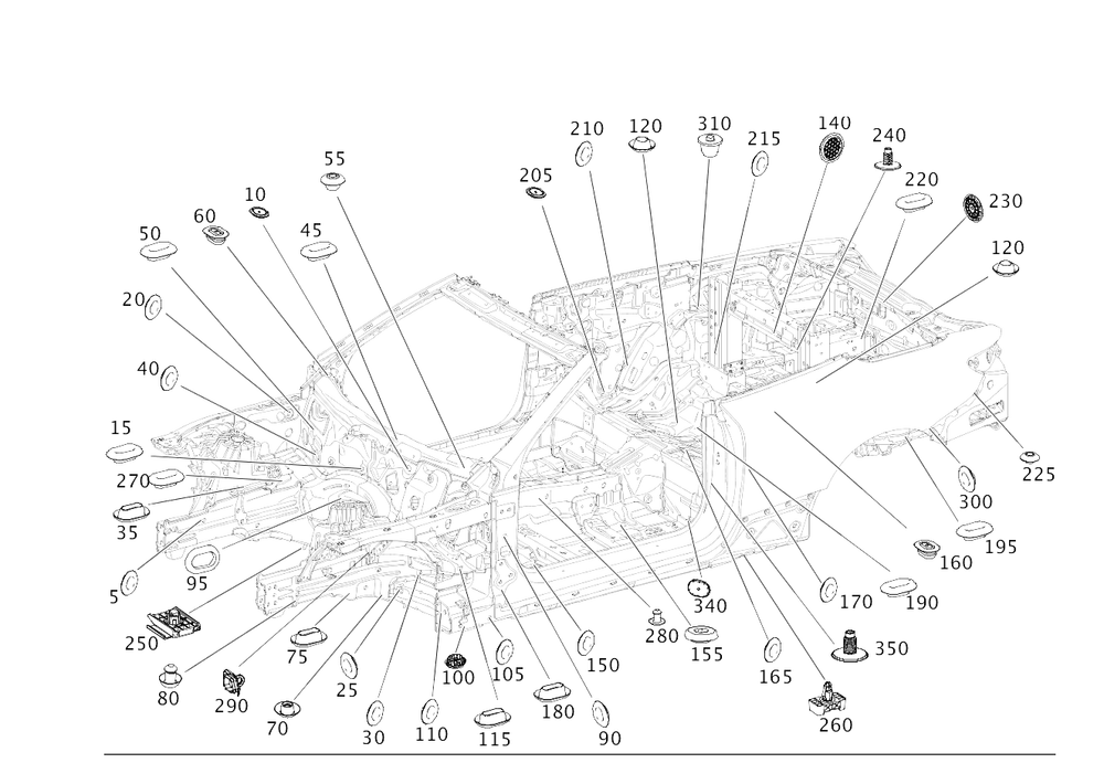 At left side member. Left mounting console. Blind plug.